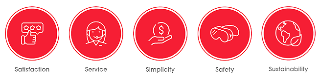 Our commitment to quality and continuous improvement has led us to develop our 5 pillars of quality. These five areas of Satisfaction, Service, Simplicity, Safety and Sustainability set out clear and measurable KPIs that ensure we are upholding ourselves to a consistently high standard and delivering on our promise of operational excellence.