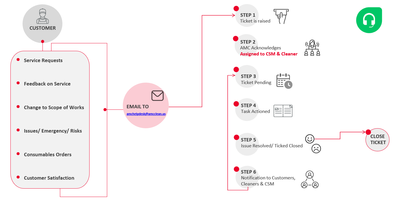 AMC Freshdesk is an online APP with ticketing functionality that streamlines all requests, feedback and resolution to a single platform.